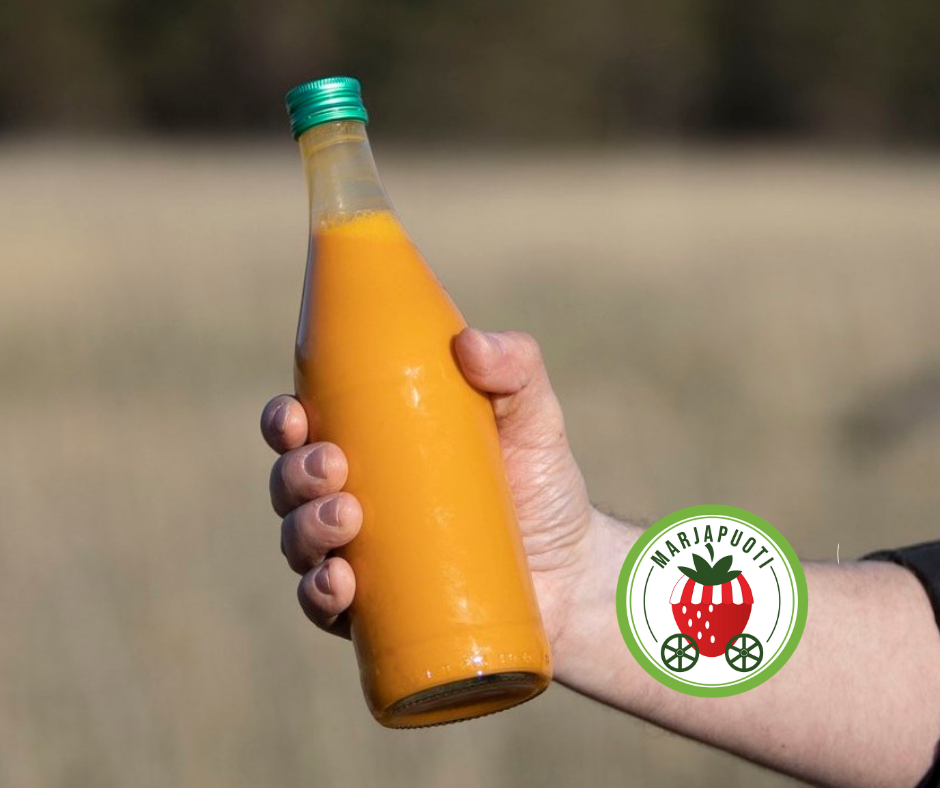 Kylmäpuristettua tyrnimehua, sisältää 100% marjaa. Ei sokeria, eikä säilöntäaineita.